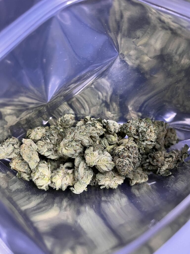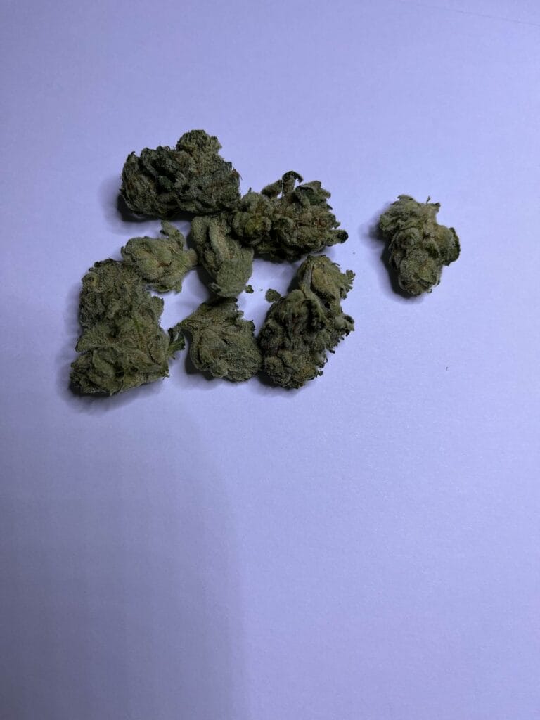 Skup się na jakości trymowania kwiatów (dokładność usunięcia listków) oraz ilości drobnych fragmentów roślinnych (miału) w opakowaniu,