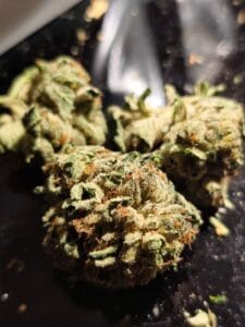 Skup się na jakości trymowania kwiatów (dokładność usunięcia listków) oraz ilości drobnych fragmentów roślinnych (miału) w opakowaniu,